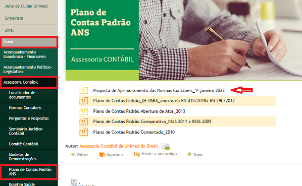 Fique por dentro e acesse portal Unimed > Áreas > Assessoria Contábil > Plano de Contas Padrão ANS: