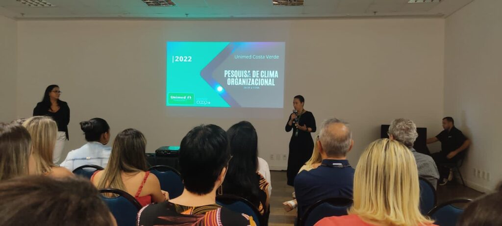 Em 28 de maio, a gerente de Gestão de Pessoas da Federação Rio, e a analista de RH, Claudia Reis e Sheila Nascimento, respectivamente, apresentaram para os diretores da Unimed Costa Verde Paulo Wesley Bragança, Roberto Akiyama, Antônio Genovez, Adão Guimarães, aos gestores e colaboradores o objetivo e as vantagens da aplicação da Pesquisa de Clima Organizacional, na cooperativa, para potencializar a necessidade da participação de todos e mantendo a confidencialidade de cada etapa do processo.