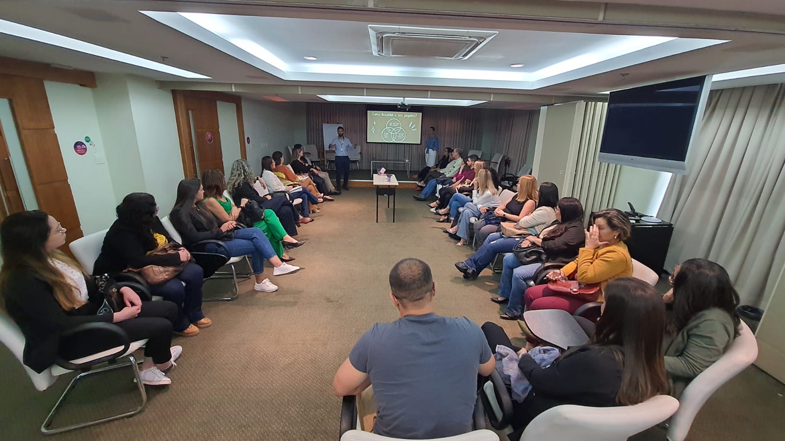 Durante a manhã, a Gestão de Pessoas federativa apresentou o propósito da Federação Rio, como balizador das rotas de atuação para uma melhor entrega frente aos atuais desafios. Em seguida, a Unimed de Volta Redonda, que conquistou o 1° lugar no programa Prêmio Melhores Práticas em Gestão de Pessoas, explanou sobre as atividades do seu setor. Essa troca de ideias possibilitou formas de se espelhar e aprende uns com os outros.