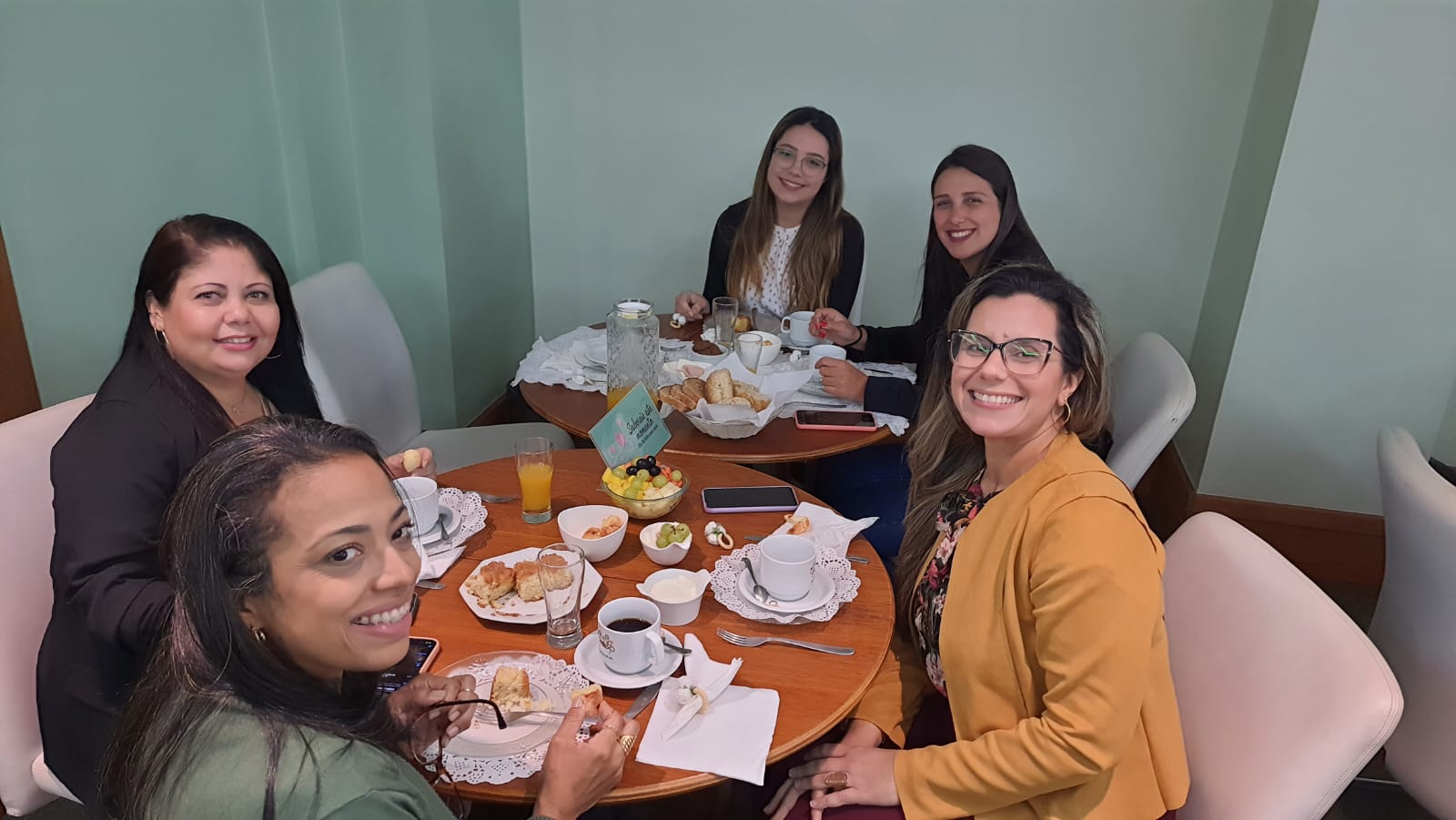 Neste encontro, houve um almoço especial. Foi servido um brunch, em mesa posta, para aproveitarem o momento também para uma conversa descontraída junto aos colegas.