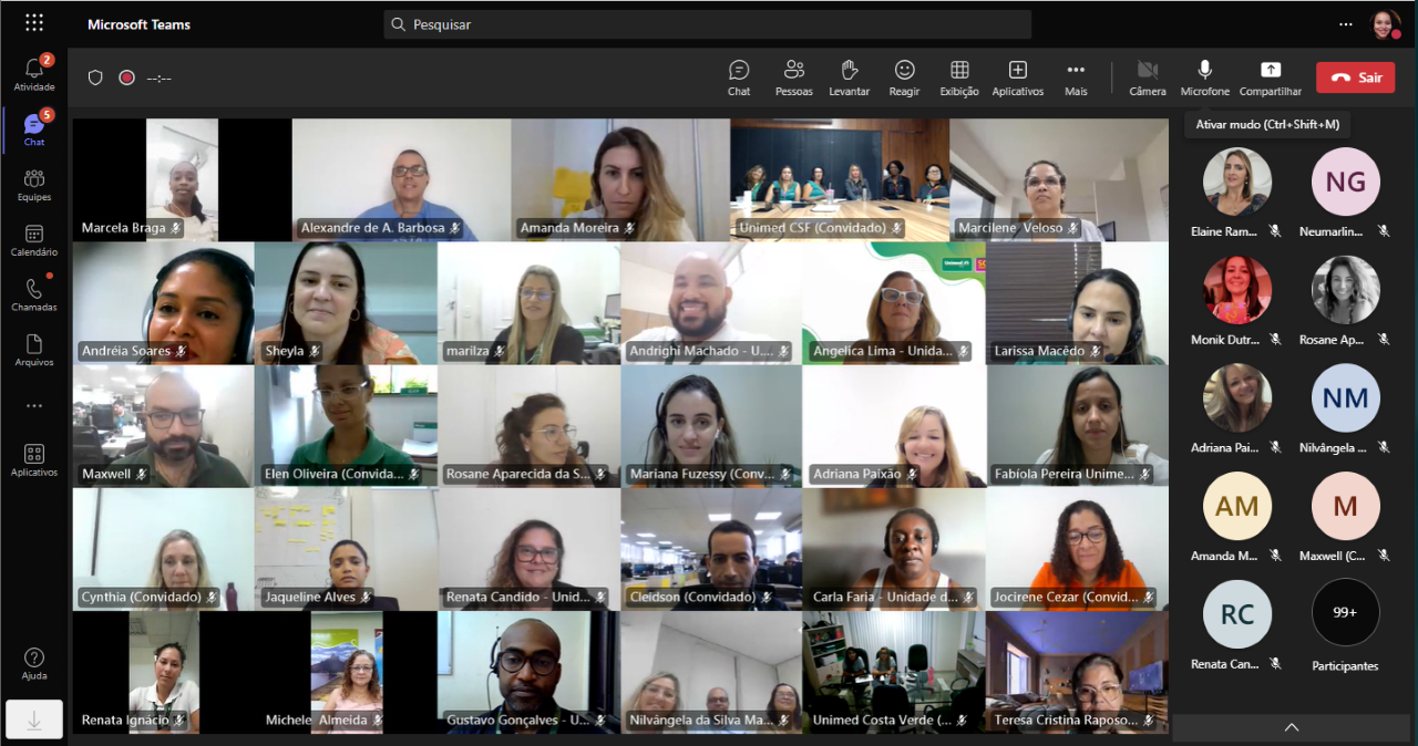 No dia 27 de março, a Federação Rio realizou a reunião conjunta do Comitê Estadual de Intercâmbio (CEI) e do Grupo Permanente de Atendimento Estadual (GPA), em formato online. O encontro contou com a participação de 157 colaboradores, dentre eles dos setores de Intercâmbio e de Relacionamento da cooperativa e das Unimeds Araruama, Barra Mansa, Cabo Frio, Costa do Sol, Costa Verde, Leste Fluminense, Marquês de Valença, Norte Fluminense, Nova Iguaçu, Petrópolis, Rio, Três Rios e Volta Redonda.