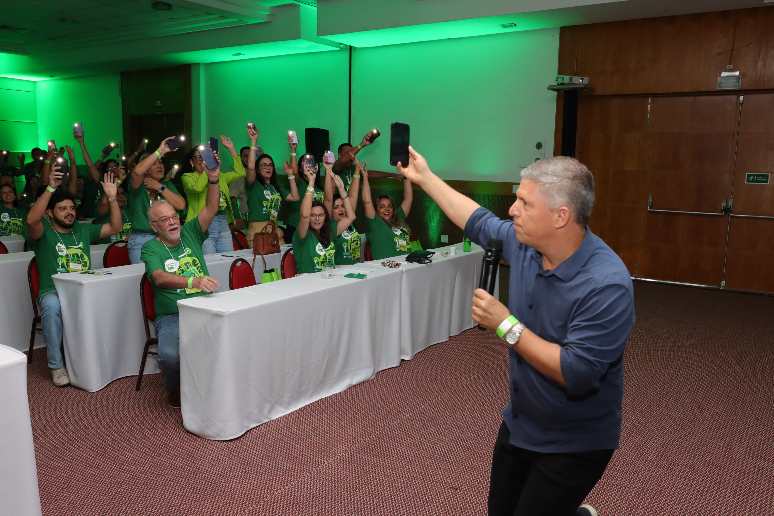 A manhã de 2 de dezembro, começou animada e coletiva. Já no clima dessa edição da Convenção Estadual de Vendas 2023, cujo conceito é a sinergia e tem por bases a sintonia com o cliente, as conexões entre todos e o propósito comum, os participantes vestiram a mesma camisa verde, formando, assim, uma única equipe.