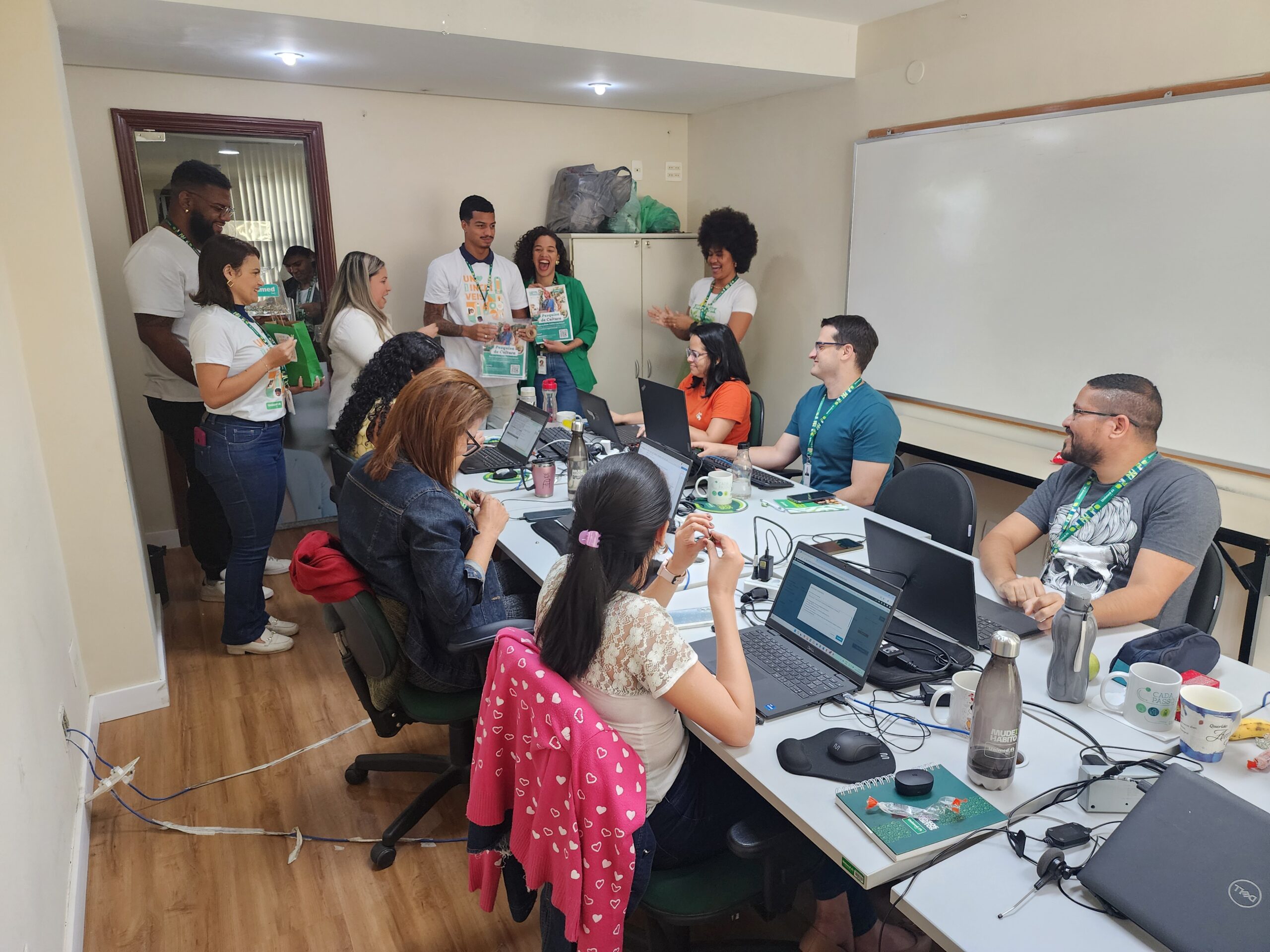 Na tarde de 16 de outubro, em continuidade ao projeto ‘Agente Transformador’, as equipes de Gestão de Pessoas e Mercado se uniram para a realização de uma blitz nas áreas, para mais de 900 colaboradores da Unimed Ferj, em sua sede, no Centro do Rio, como reforço da campanha de Pesquisa de Cultura Organizacional, iniciada no início do mês.