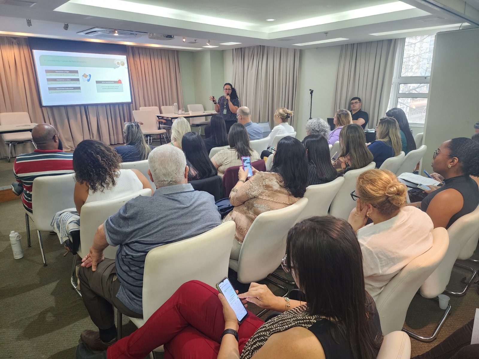 Em seguida, entre outros assuntos, a coordenadora de Intercâmbio da Unimed do Brasil, Maria Lucia Sakabe, em transmissão on-line, abordou os impactos da nova lista de honorários médicos para o intercâmbio. Já o gerente de Auditoria em Saúde da Unimed Ferj e assessor médico da Unimed do Brasil, Francisco Lima, analisou o impacto para a auditoria médica, seguido pela coordenadora de Projetos de Intercâmbio, Ariane Gomes, que apresentou os canais de comunicação para solicitações de caráter institucional.