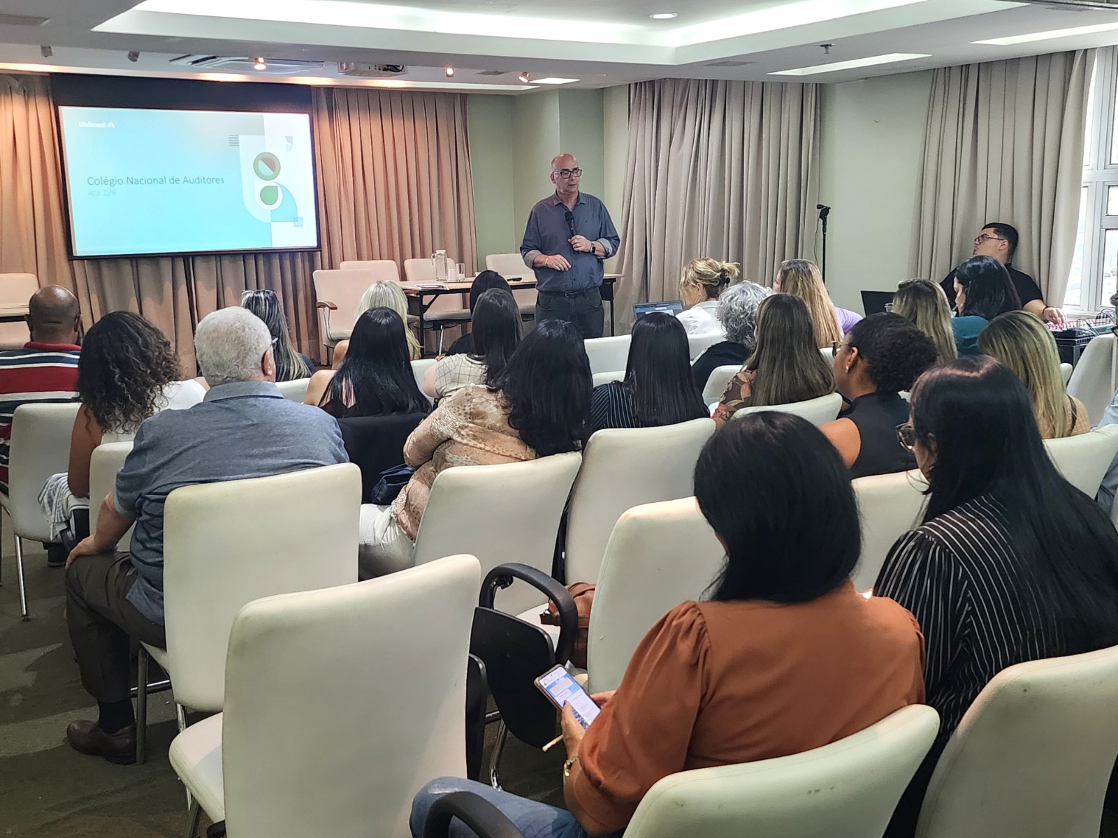Após algum tempo de hiato, devido às mudanças com a migração dos beneficiários e a transição do papel exclusivamente institucional para também o de operadora, a Unimed Ferj realizou, no dia 9 de outubro, em sua sede, a reunião conjunta do Comitê Estadual de Intercâmbio (CEI), do Comitê Estadual de Auditores (CEA), além do Grupo Permanente de Atendimento (GPA), com representantes das áreas de Intercâmbio e Auditoria, para cerca de 50 participantes das Unimeds do estado. Os diretores de Integração e Intercâmbio, José Manes, e Administrativo-Operacional, Fábio Nasser Monnerat, abriram o encontro e falaram da importância dessa retomada.