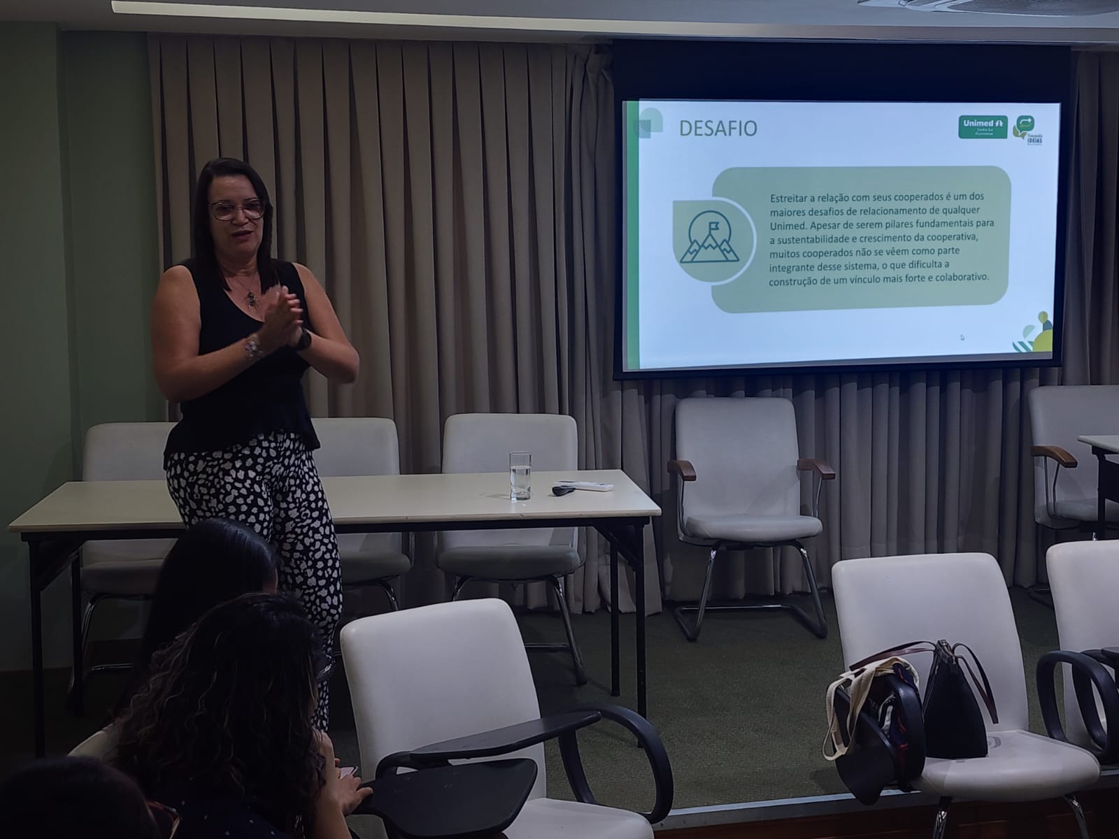 Durante o encontro organizado pela coordenadora de ESG e Ações Institucionais, Juliana Condis, a gerente de Relacionamento com o Cooperado, Prestador e o Cliente da Unimed Campos, Josiane Santos, e a supervisora de Custos Assistenciais da Unimed Centro Sul Fluminense, Elenice Ventura, apresentaram, respectivamente, os cases de sucesso ‘Circuito Integração’ e ‘Trocando Ideias’.