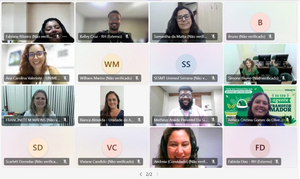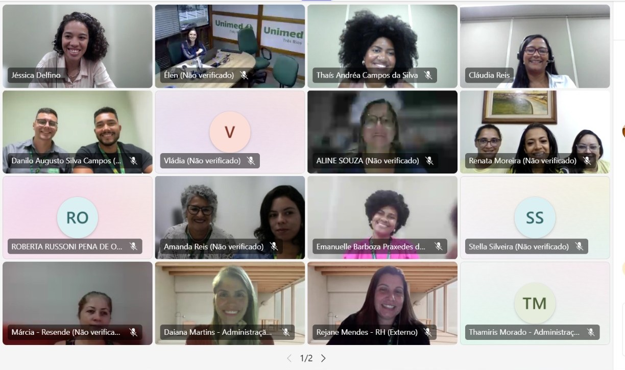 Aconteceu, de forma virtual, o primeiro encontro do UniRH deste ano, no dia 4 de abril, que reuniu cerca de 40 profissionais das Unimeds Araruama, Barra Mansa, Campos, Costa do Sol, Leste Fluminense, Norte Fluminense, Nova Iguaçu, Petrópolis, Resende, Serrana RJ, Três Rios e Volta Redonda.