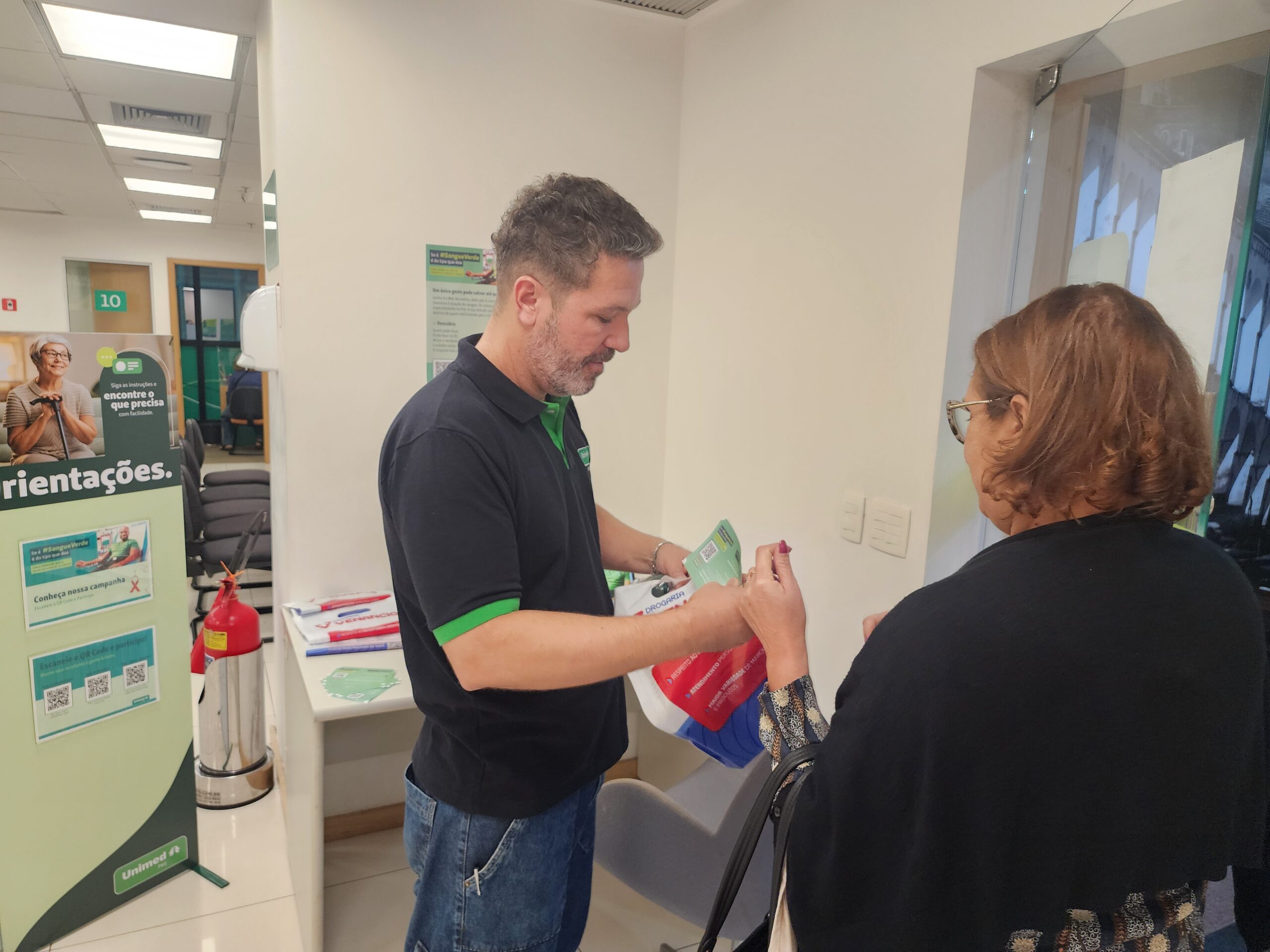 Durante o mês de junho, os clientes da Unimed Ferj participaram de uma ação interativa nas Lojas de Atendimento do Centro e da Barra da Tijuca. Por meio de um QR Code disponível no local, foi possível acessar o hotsite #SangueVerde, com conteúdos digitais sobre a importância da doação de sangue.