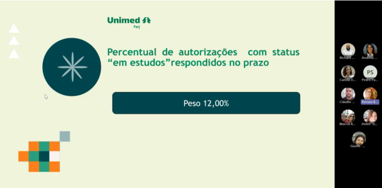 Assumindo um papel institucional com protagonismo na busca por excelência, a área de Intercâmbio da Unimed Ferj realizou, nos dias 18 e 24 de junho, uma capacitação sobre o Ranking de Intercâmbio, em formato híbrido. Conduzido pela analista de Intercâmbio, Renata Madeira, o evento reuniu 28 colaboradores para compartilhar e aprofundar o conhecimento sobre os grupos de indicadores de Performance Eletrônica de Atendimento e Performance do Processo de Cobrança e Contestação.